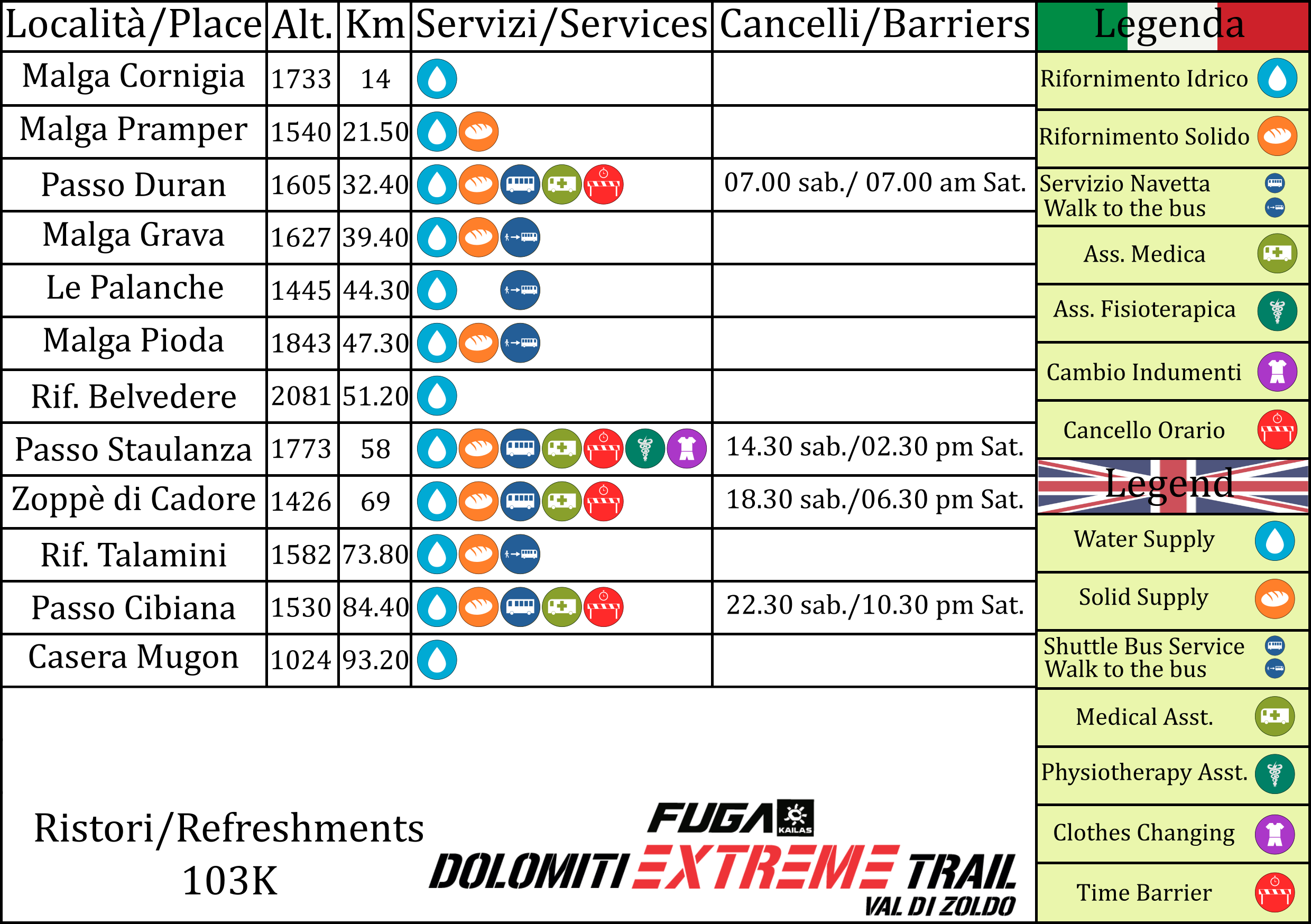 | Finish | 04.00 am Sunday - Forno di Zoldo |