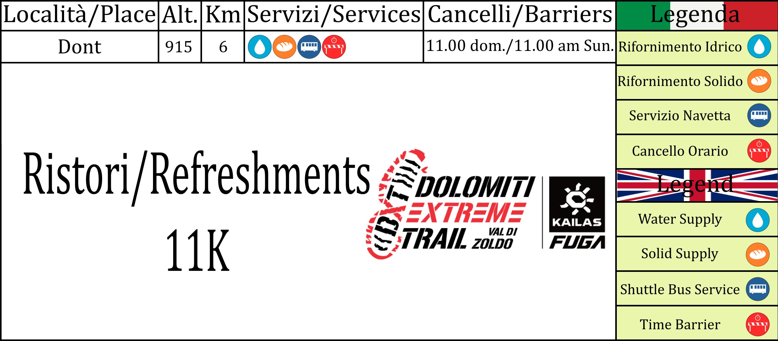 | Time barriers | 11.00 am - Dont (about km 6) |